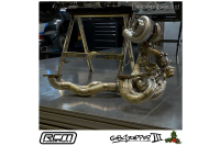 In this first picture, we can see the exhaust manifold for GS3. They are using a rotated Precision turbo, and there also looks to be an anti-lag valve plumbed into the header as well.