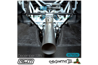 There is plenty of exotic materials on display at the rear of Gobstopper III! The center exit exhaust system is constructed using 0.7mm Inconel and expels gases efficiently into a low pressure area at the rear of the car above the main carbon aero tunnels through its 3.75” bore pipework.