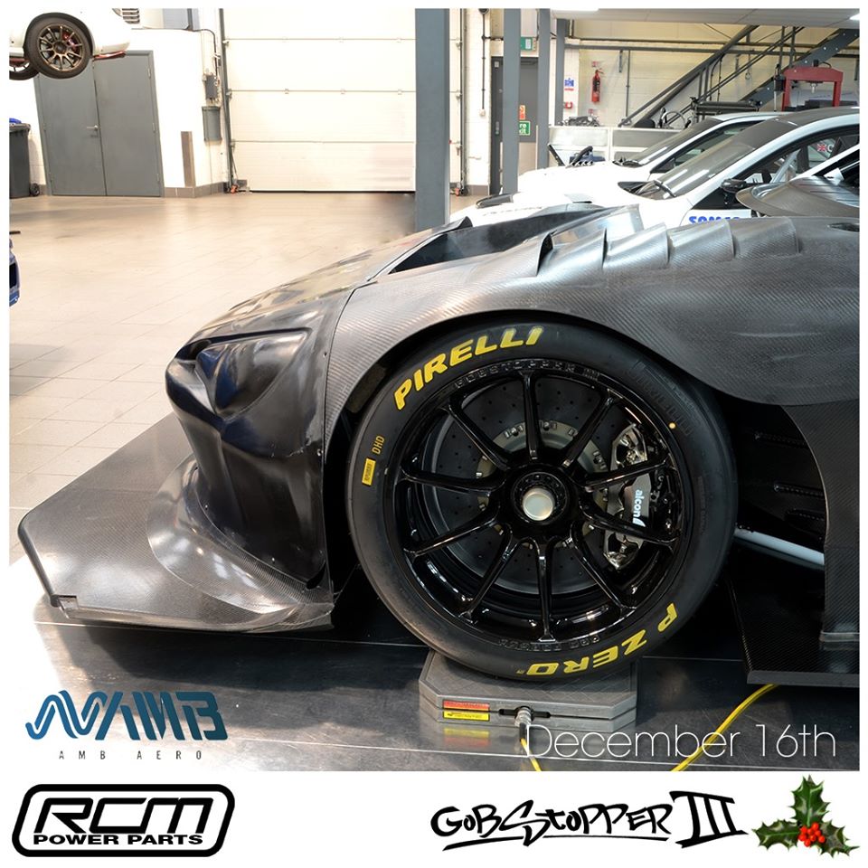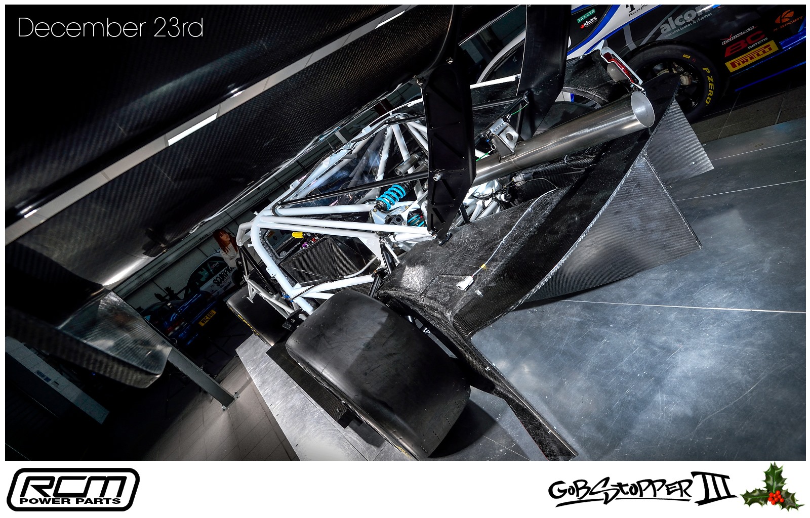 Touchdown! At a whopping 2 meters in width Gobstopper III’s triple element carbon fiber rear wing is the highest down-force spec available from British race car constructor DJ Racecars.