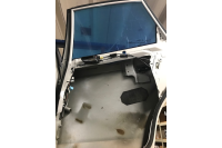 One of the things that we decided to add with the extra time that we had are Lexan windows front and rear. We found a company that makes formed OE replacement lexan pieces and those are nearly done getting installed. Scotty may have also taken this opportunity to cut more weight out of our rear doors. This should save us about another 25 lbs out of the car, and when it comes to weight savings, every little bit helps.