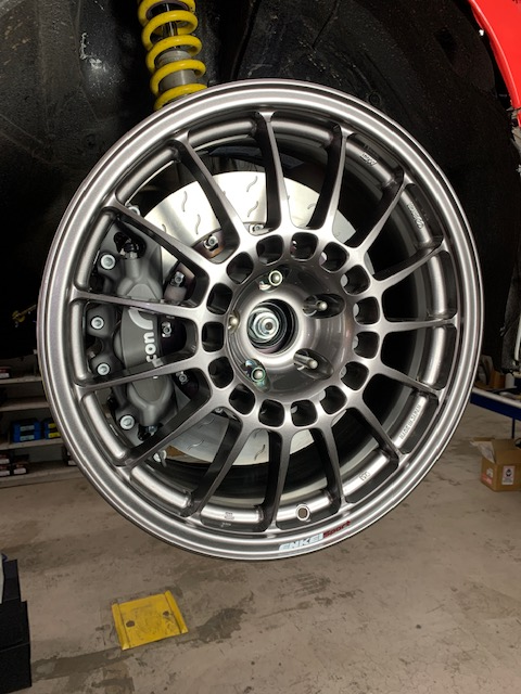 Basically to fit the larger brakes, we have to move to an 18" wheel instead of the 17" wheels we have been running to date. If we are going to run the 18" wheel, then we can finally install the Wisefab Front drop knuckles to correct our front suspension Geometry, which is something that we tried to do last year, but couldn't because of our 17" wheels.