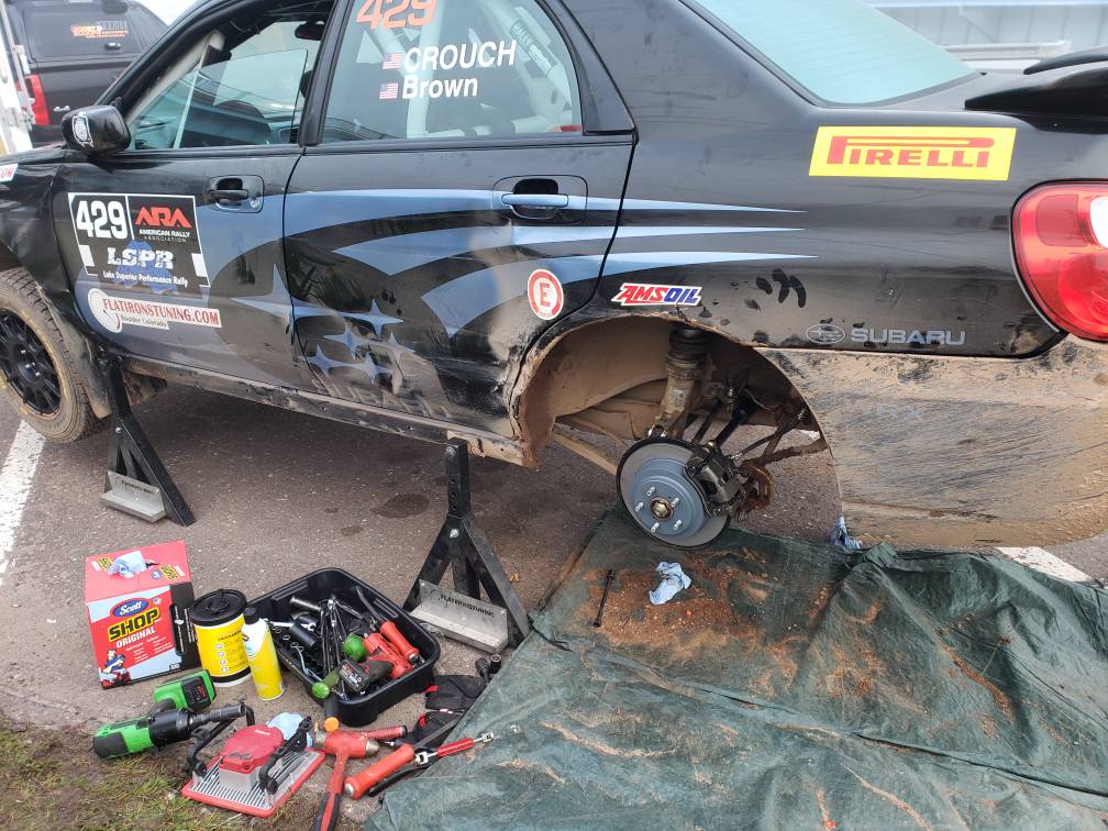 Before the Flatirons Tuning Rally team started the 2019 LSPR rally, we took the car out to the press stage to shake it down. It wasn't that technical of a stage, and it was only a little over a mile long. After two good runs, Scott picked up one of our crew, Bill Wantuk, for the next run. When they got the green flag to go on stage, Scott launched the car, and they were off. But there was a bit of noise coming from the left rear of the car.