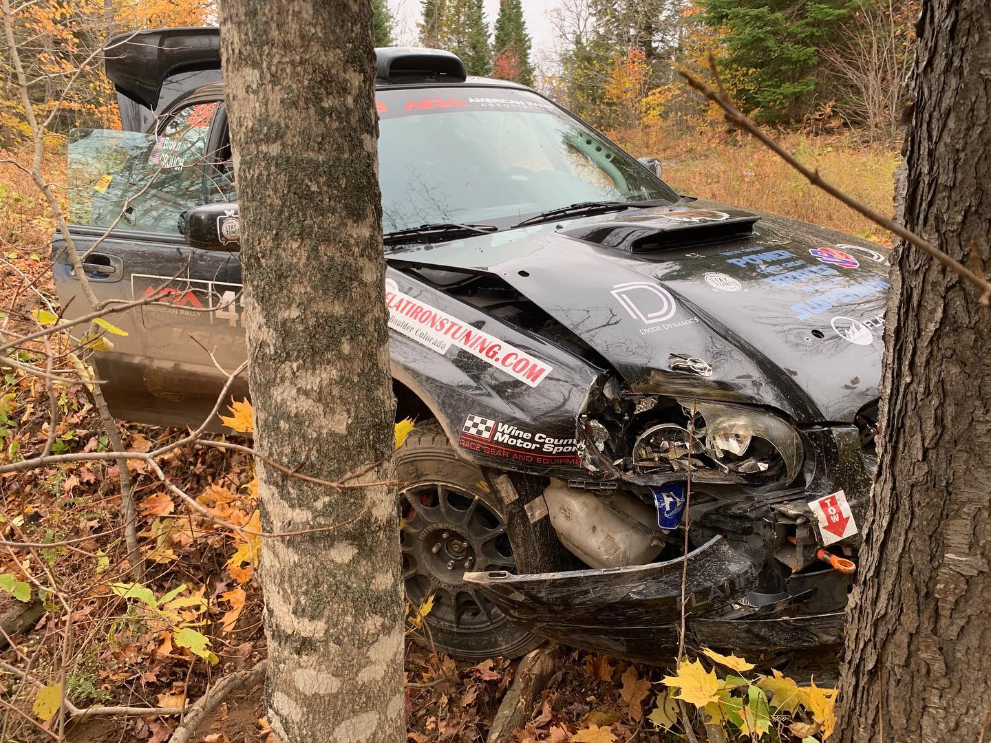 After a few good stages, we went off course, and unfortunately found a tree to bring the car, and our race to a halt.
