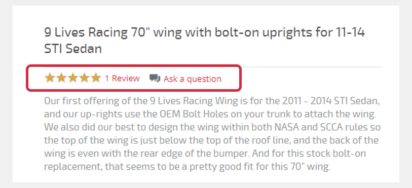 You will now see the above Reviews/Q+A widget above each one of our products... If you click on this box, it will take you to our full Reviews/Q+A section, where you can leave us a review, ask us a question, or see Q+A from others!