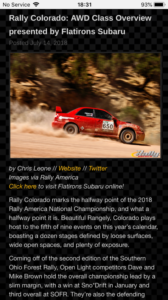 Now entering its 7th year of competition, OTC Racing started initially with SCCA Rallycross before moving to regional Rally America events and CHCA hill climbs. They compete in their 2004 Subaru Impreza WRX built to CHCA Rally Turbo class specification. This specification affords the team much more freedom than many other forms of racing, and the class in informally known to the competitors as "Colorado Group B" in an homage to the fabled FIA Rally class of the 1980s which have been labelled "too fast to race".