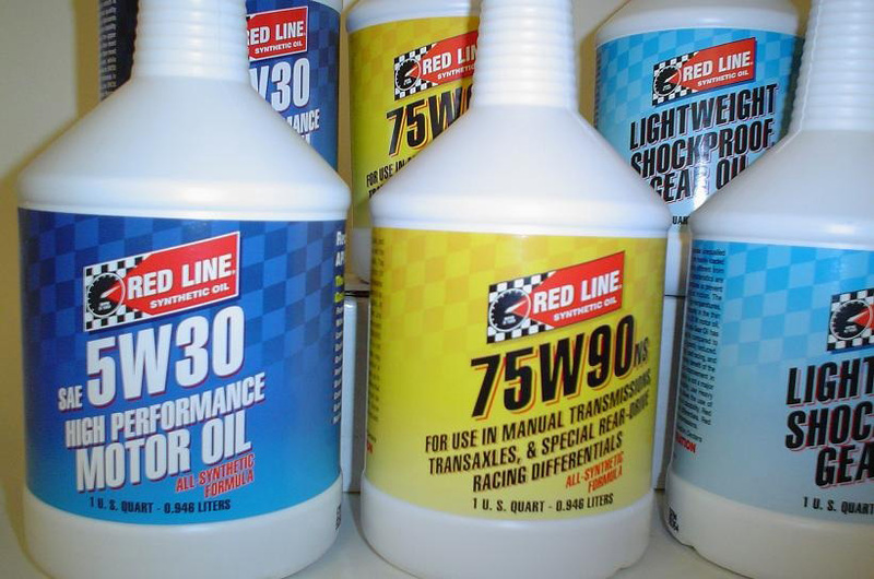 For our car, we are using Redline 5W30 for the engine, Redline 75W90 NS for the transmission because it is specifically formulated to work with synchros, and Redline Lightweight Shockproof for the rear differential.
