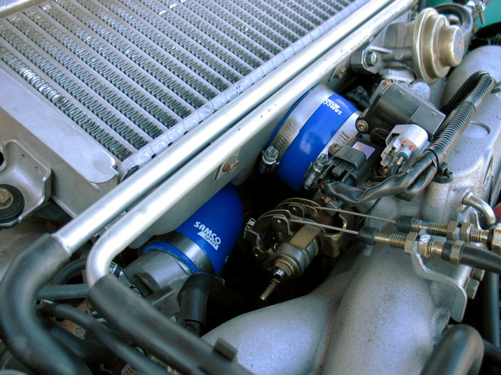 Sure they look great on your engine, but they do serve a purpose. First, notice how much smoother the silicone hose is than the stock one. This will make it easier for the intake charge to get into your intercooler, and silicone is much better able to withstand high temperatures and pressures than the stock plastic, so it should last for years. Second, I am sure you will agree that it is a heck of a lot easier to get the silicone hose on and off than the plastic one.