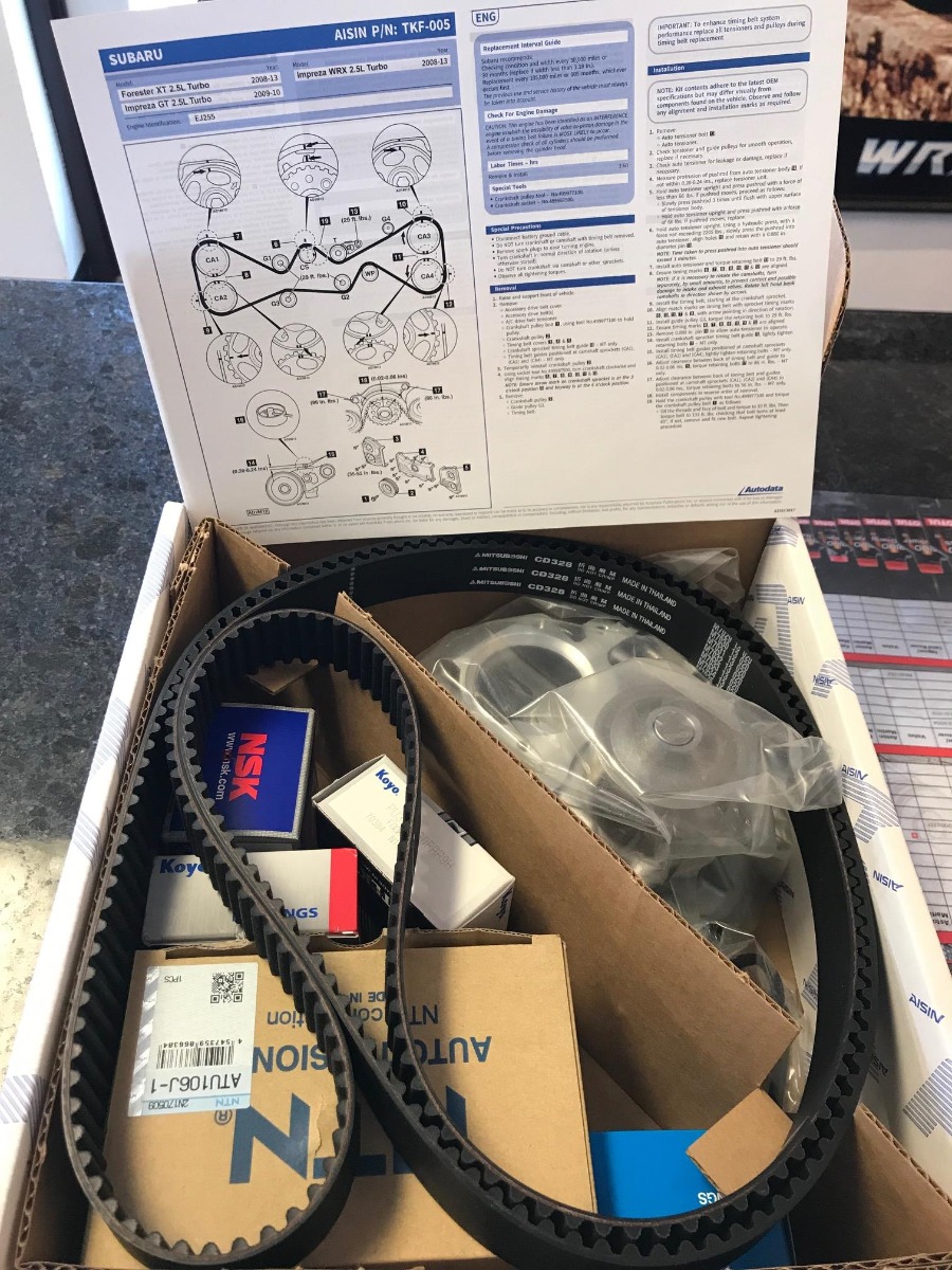 If you have a WRX or STI, about every 100,000 miles you are due to go in and replace your timing belt. Typically, when you do this service, you want to replace most of the parts associated with the timing belt so that you will have another 100,000 miles or so of trouble free operation.